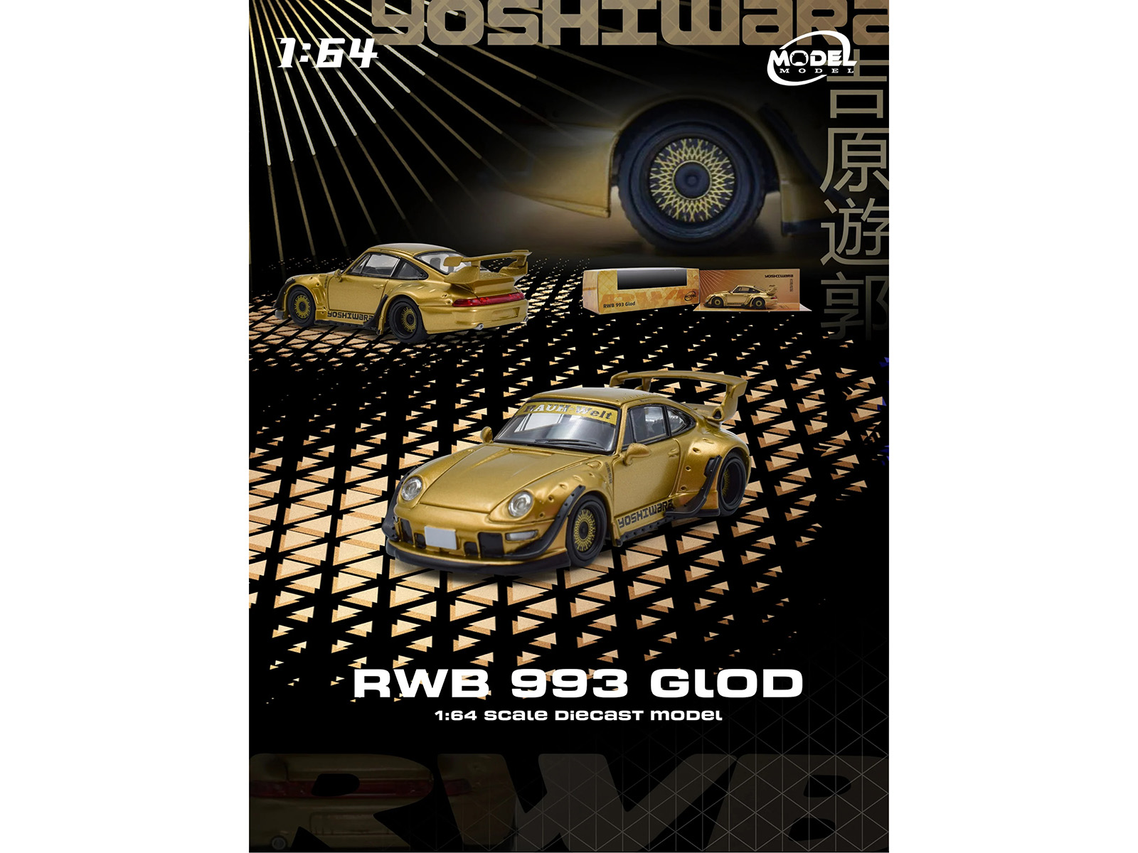 - Brand new 1/64 scale diecast car model of RWB 993 “Yoshiwara” Gold Metallic die cast model car by Model Model.
