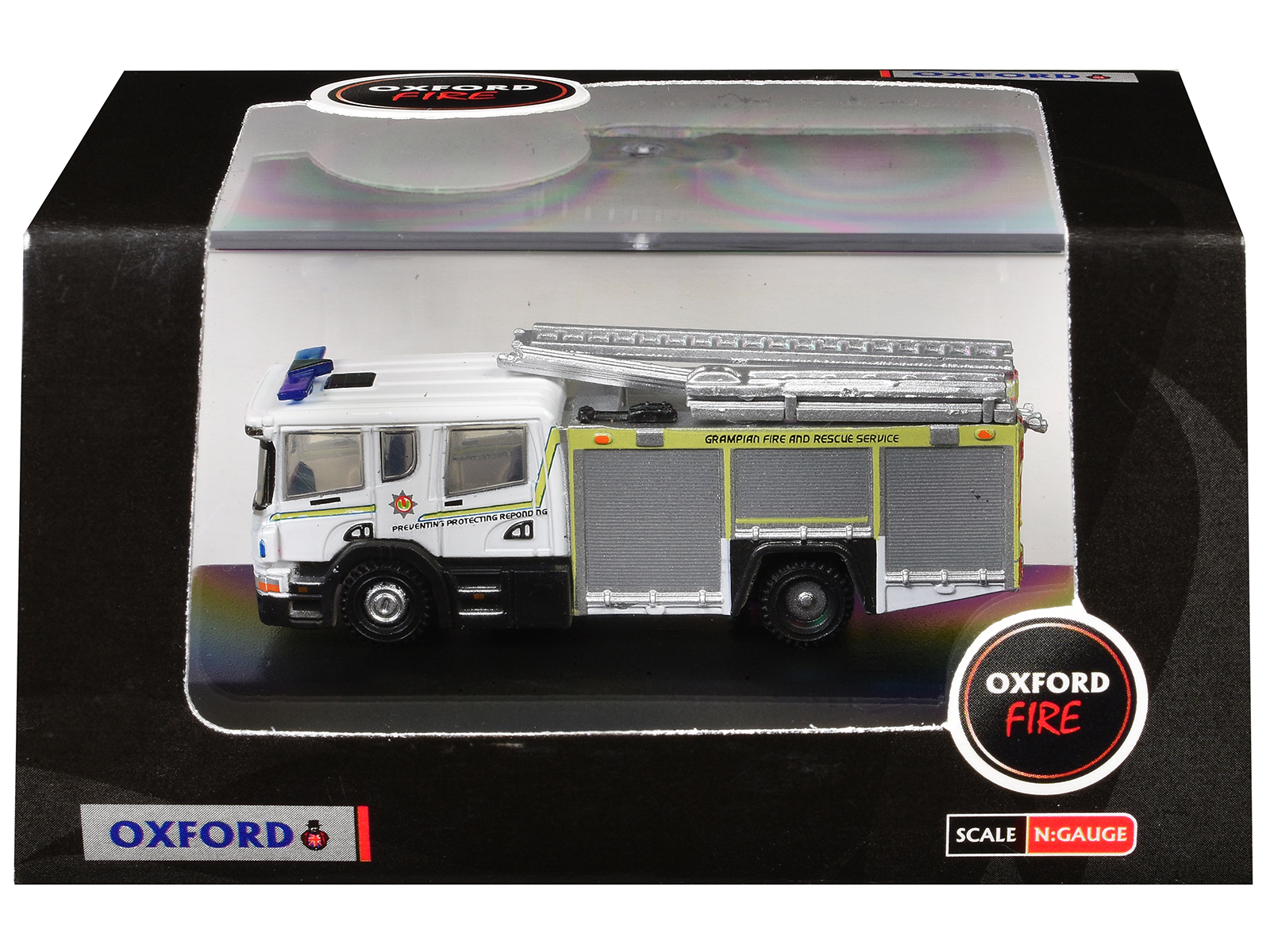 - Brand new 1/148 (N) scale diecast car model of Scania Pump Ladder Fire Engine “Grampian Fire and Rescue” White with Yellow Stripes die cast model car by Oxford Diecast.