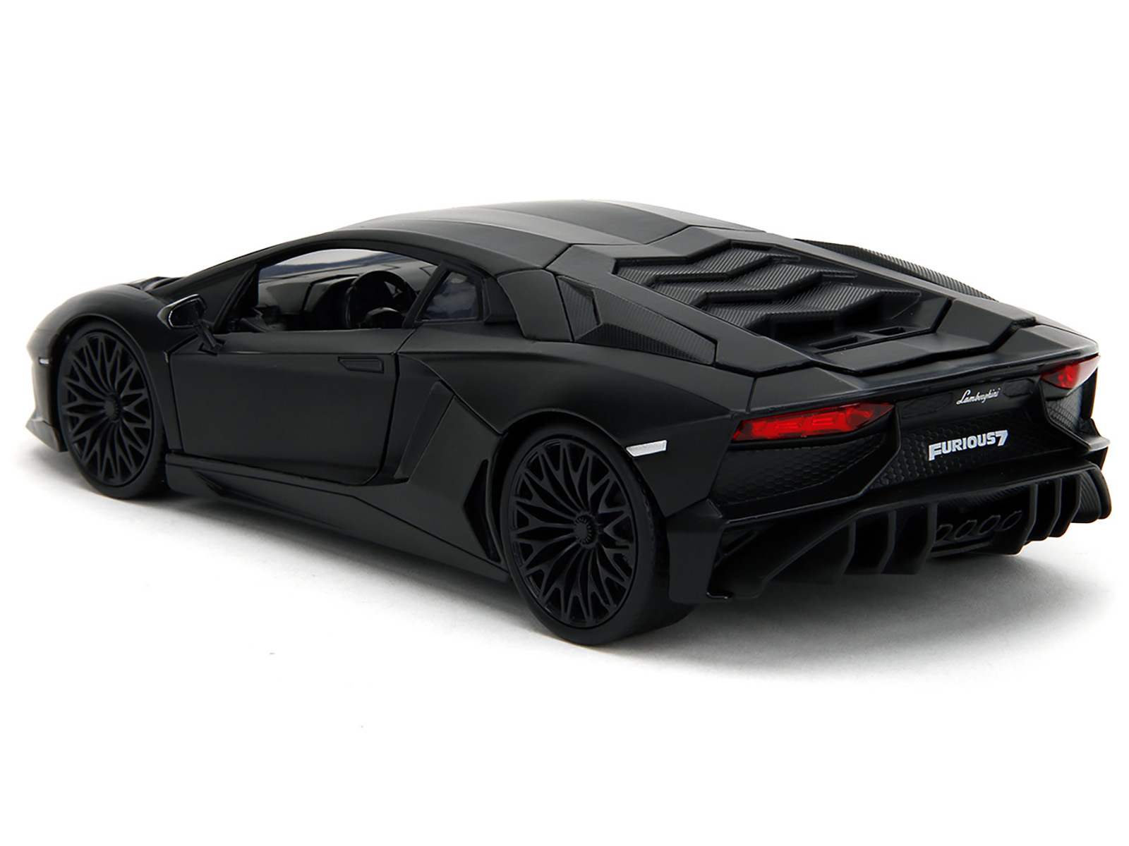- Brand new 1/24 scale diecast car model of Shaw’s Lamborghini Aventador Matt Black “Furious 7” (2015) Movie “Fast & Furious” Series die cast model car by Jada.
