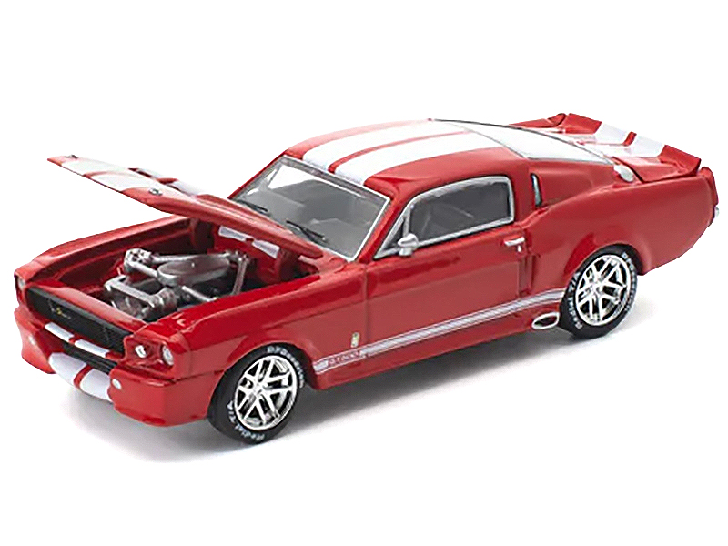 - Brand new 1/64 scale diecast car model of Shelby Mustang GT500 Red Metallic with White Stripes die cast model car by Pop Race.