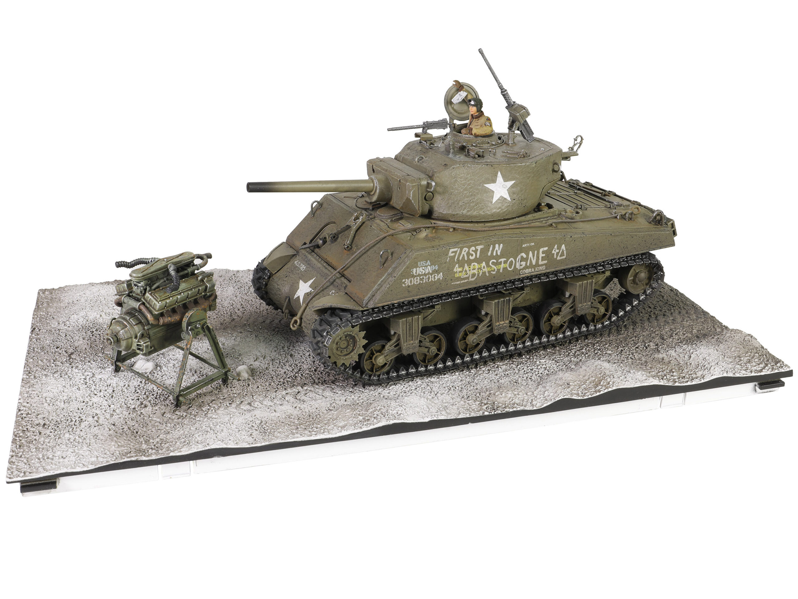 - Brand new 1/32 scale diecast model of Sherman M4A3E2 (75) “Cobra King” Medium Tank “First in Bastogne” George Smith Patton’s 4th A.Div. 3rd Army, Bastogne area (26 December 1944) “Engine Plus” Series die cast model by Metal Proud.