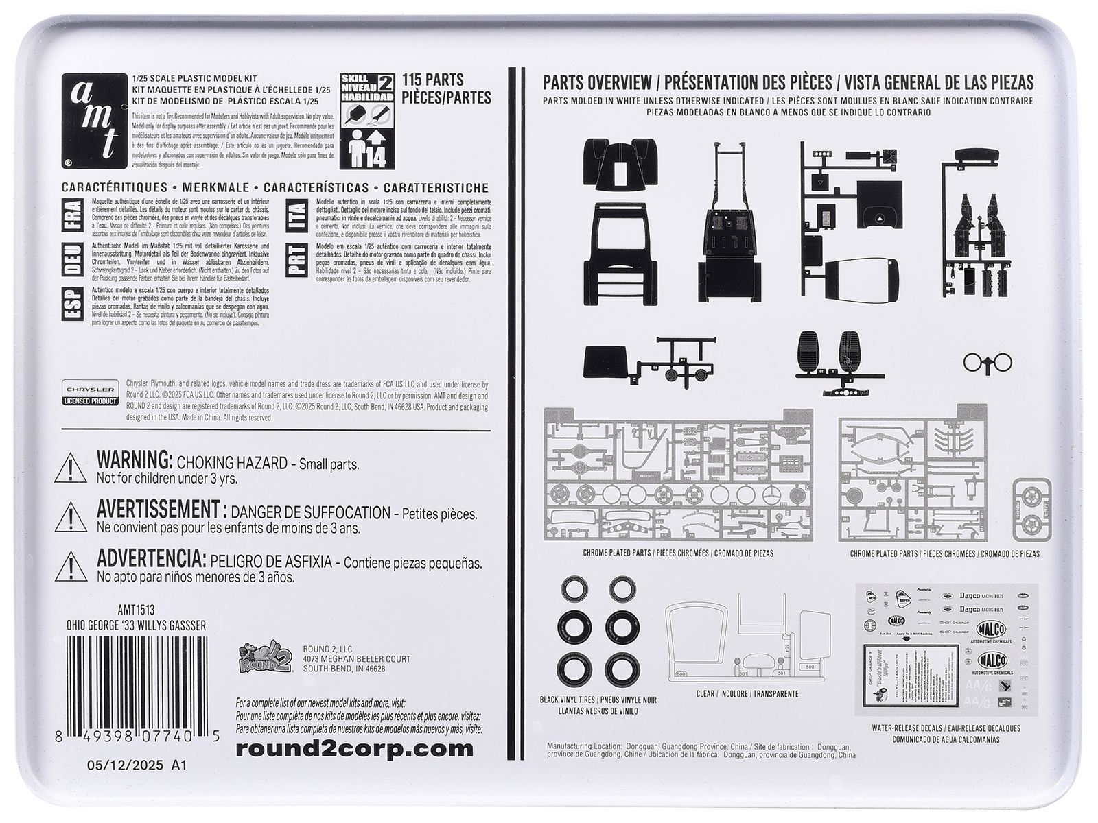 - Brand new 1/25 scale plastic model kit of 1933 Willys Gasser “Ohio George” with Collectible Tin Packaging (Skill 2) 1/25 plastic model kit by AMT.