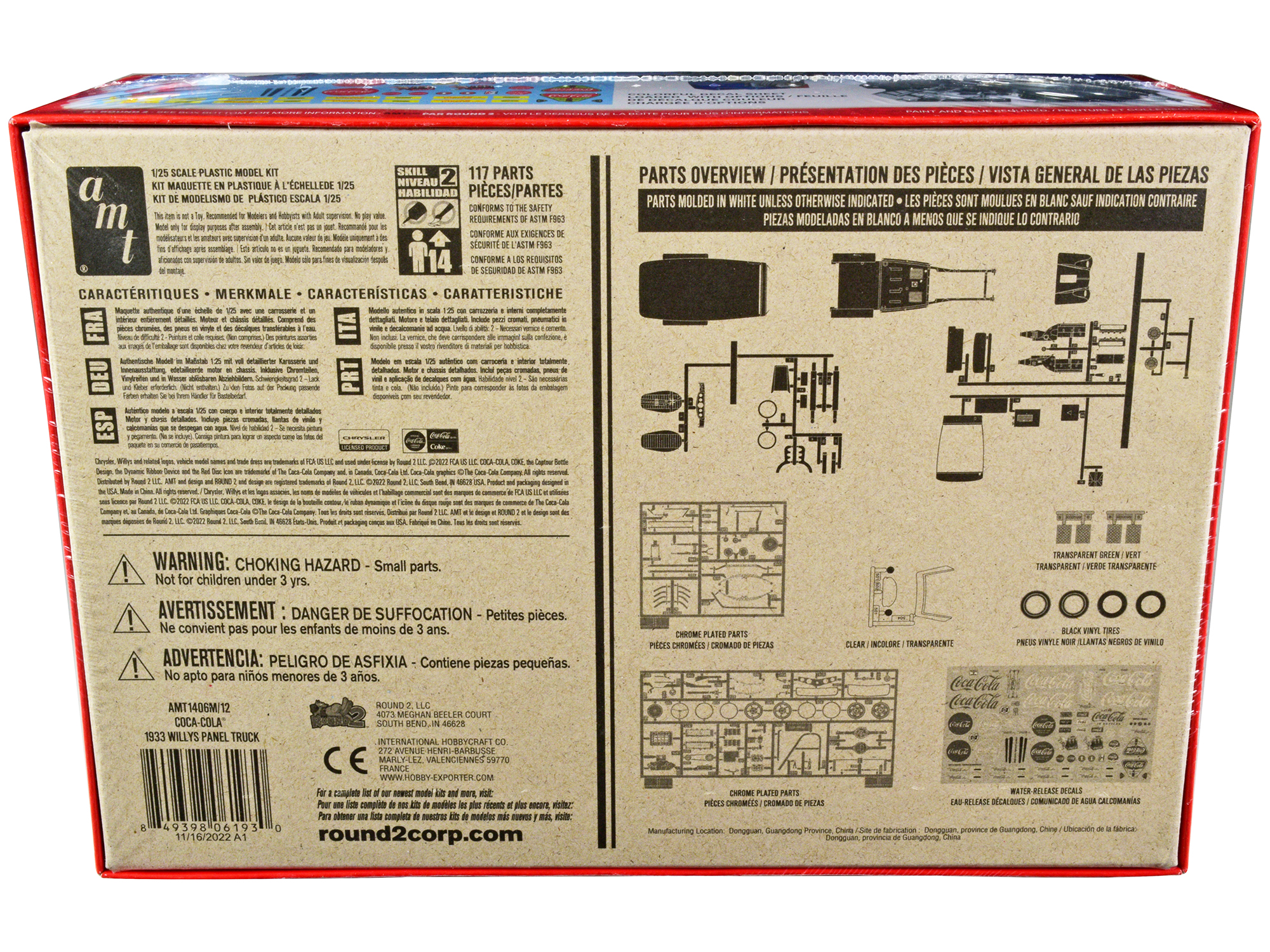 - Brand new 1/25 scale plastic model kit of 1933 Willys Panel Truck “Coca-Cola” (Skill 2) 1/25 plastic model kit by AMT.