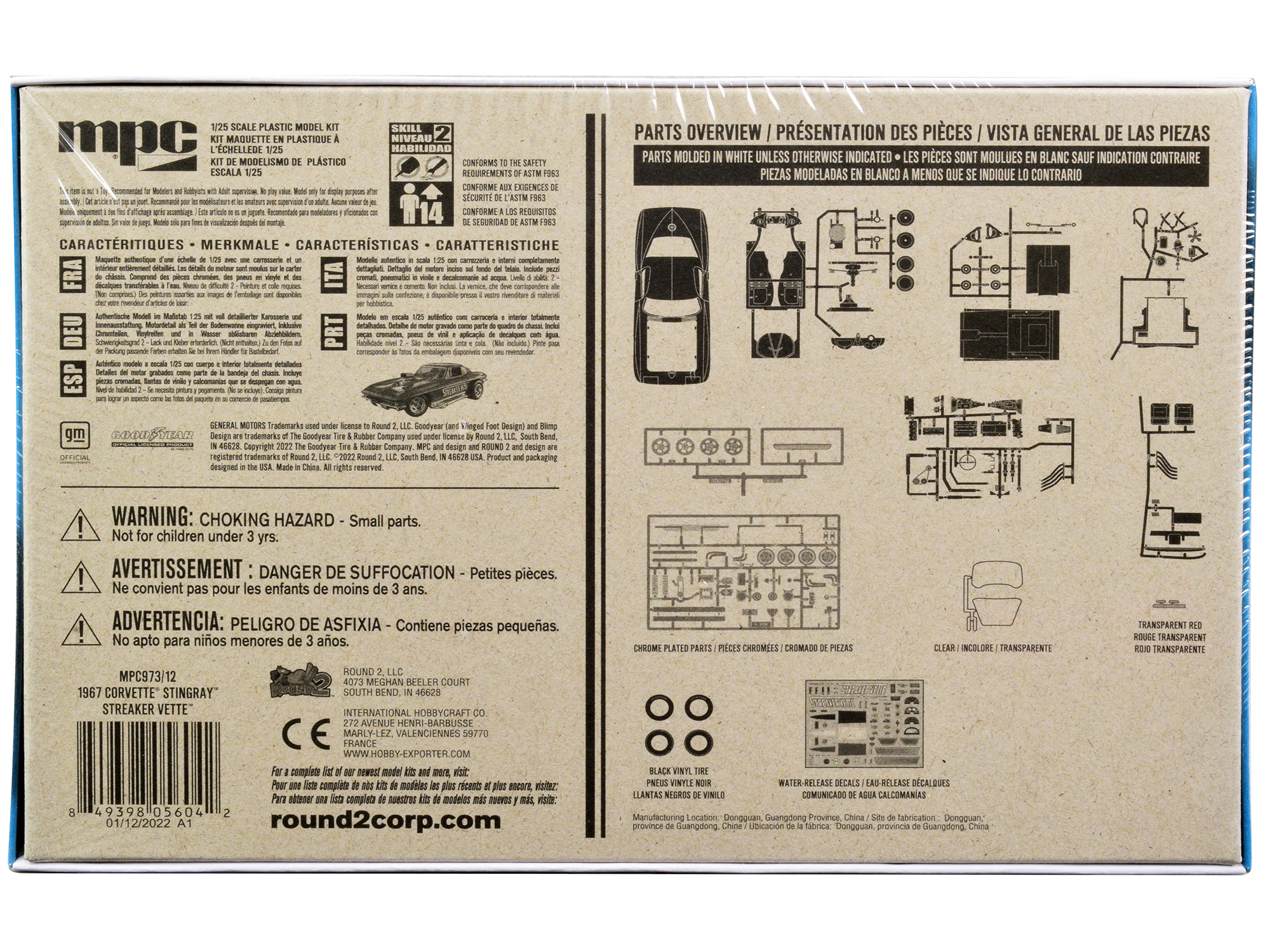 - Brand new 1/25 scale plastic model kit of 1967 Chevrolet Corvette Stingray “Streaker Vette” “The Great Street Machines” Series (Skill 2) 1/25 plastic model kit by MPC.