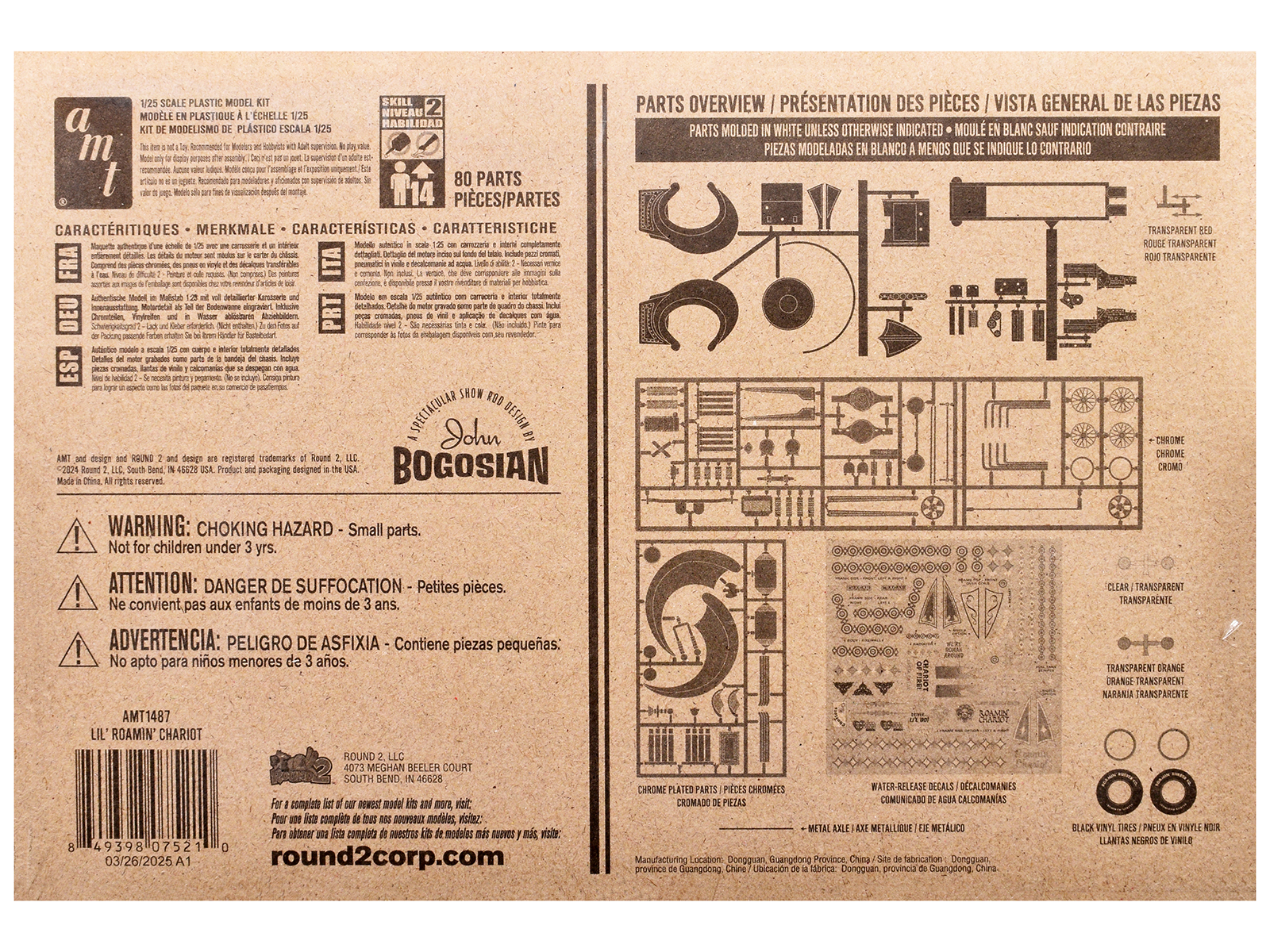- Brand new 1/25 scale plastic model kit of “Lil’ Roamin’” Chariot Show Rod (Skill 2) 1/25 plastic model kit by AMT.