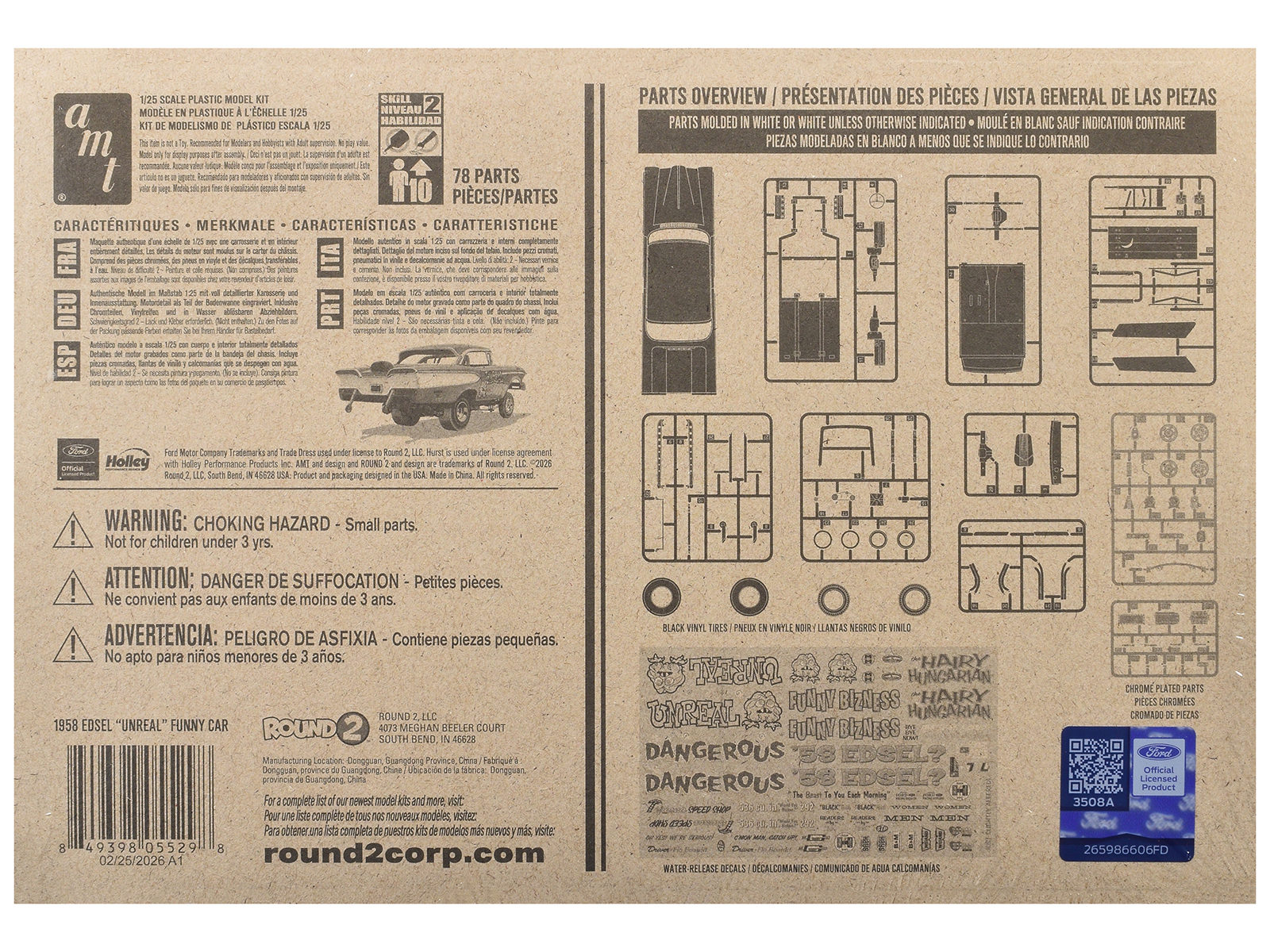 - Brand new 1/25 scale plastic model kit of 1958 Edsel Funny Car “Unreal” (Skill 2) 1/25 plastic model kit by AMT.