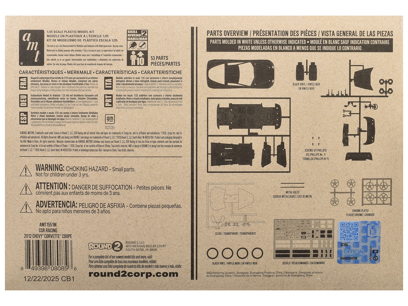- Brand new 1/25 scale plastic model kit of 2012 Chevrolet Corvette Coupe “CSR Racing” (Skill 2) 1/25 plastic model kit by AMT.