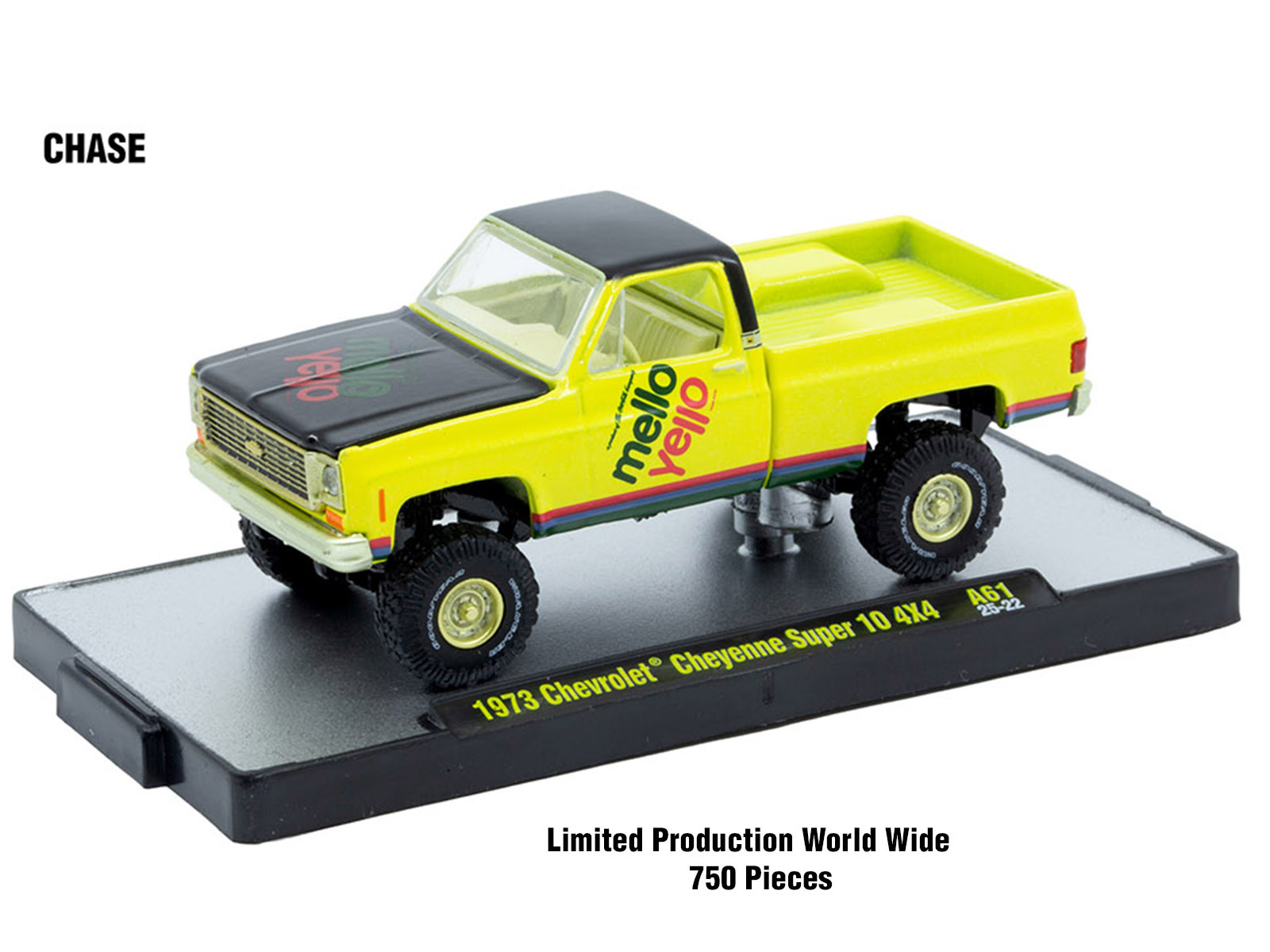 - CHASE C: 1973 Chevrolet Cheyenne Super 10 4×4 Pickup Truck. The body is yellow, the bumpers, grille, trim and wheels are gold, the interior is gold. Limited Edition to 750 pieces Worldwide.