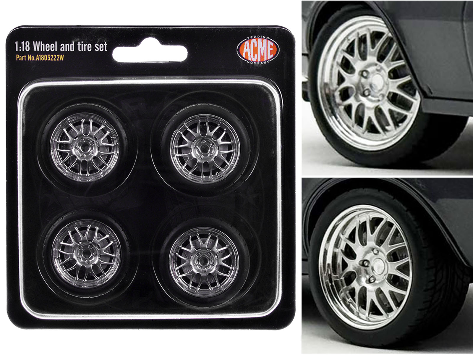 - Brand new scale model of Street Fighter 18″ Wheel and Tire Set of 4 pieces from “1968 Pontiac Firebird Street Fighter” for 1/18 scale models by ACME.