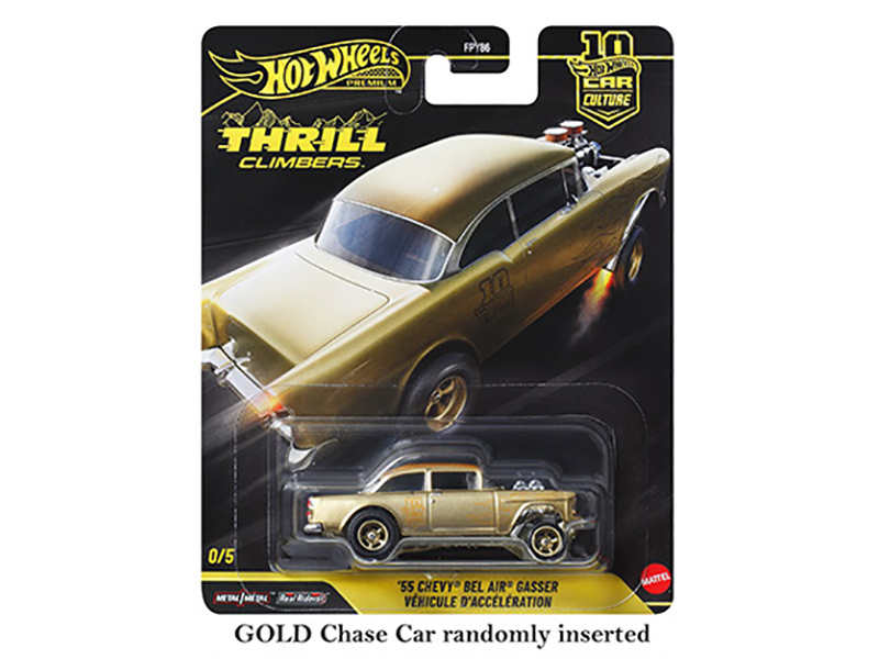 - PLEASE NOTE: Might come with a chase car version of the 1955 Chevrolet Bel Air Gasser in Gold instead of another model in the set, but it is not guaranteed.