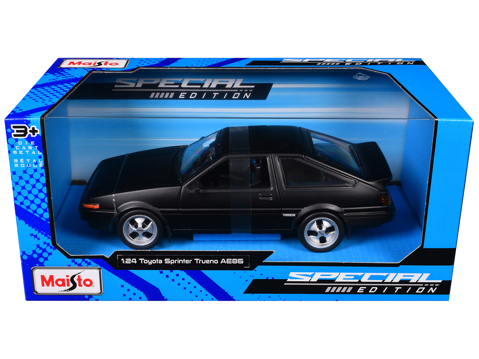 - Brand new 1/24 scale diecast car model of Toyota Sprinter Trueno AE86 RHD (Right Hand Drive) Matt Black “Special Edition” Series die cast model car by Maisto.