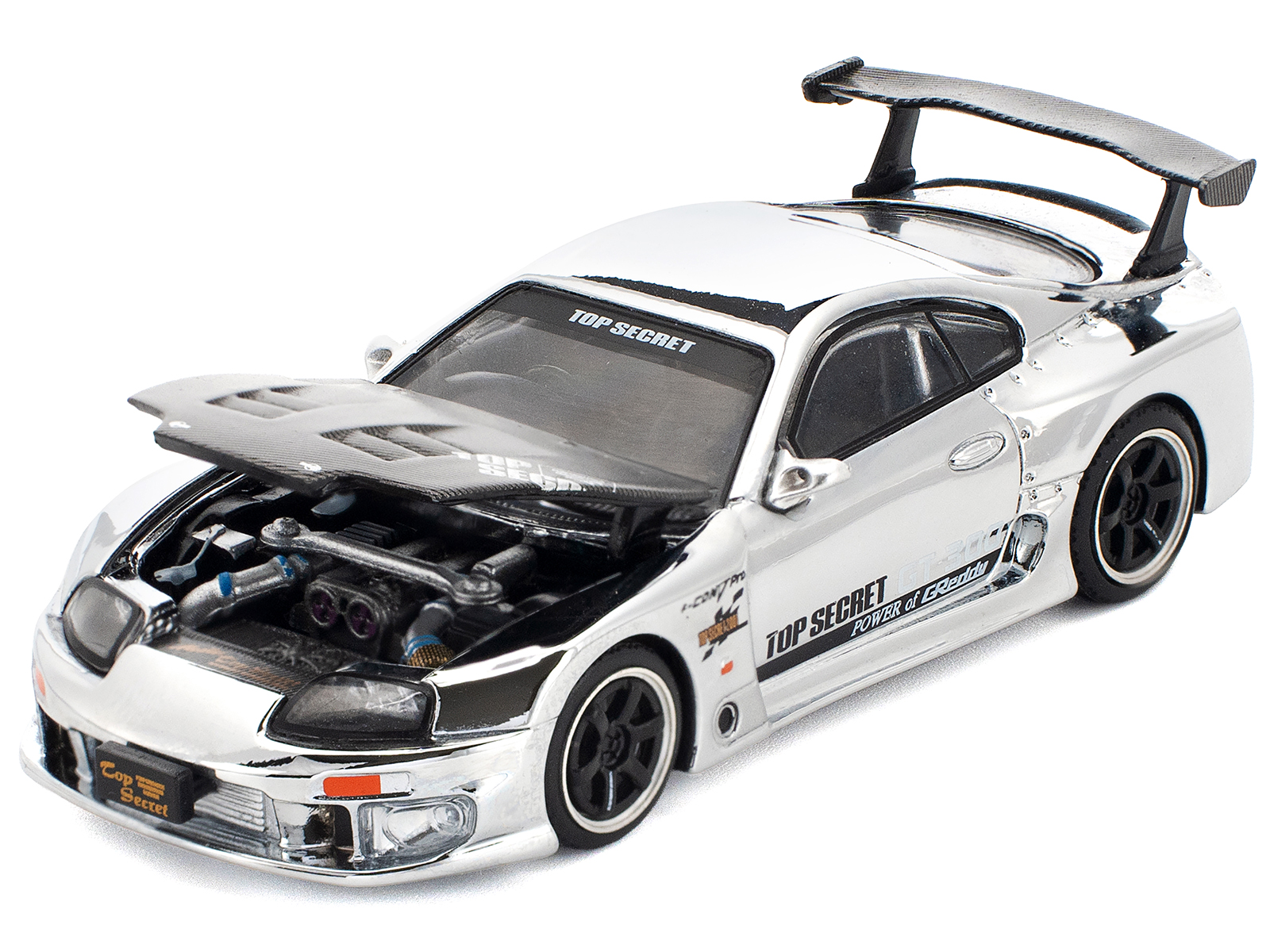 - Brand new 1/64 scale diecast car model of Toyota Supra “Top Secret” GT300 RHD (Right Hand Drive) Silver Chrome die cast model car by Pop Race.