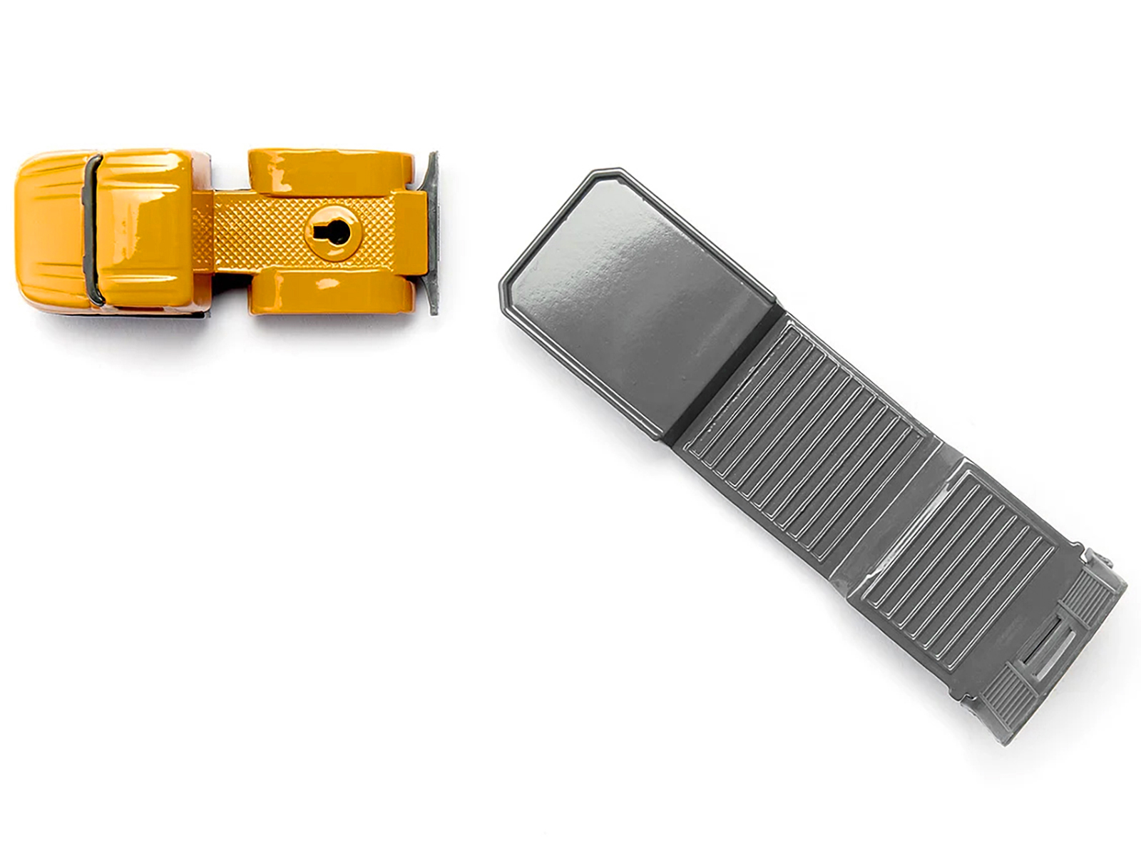 - Brand new diecast model of Truck with Low Loader Trailer and Front Loader Yellow die cast model by Siku.