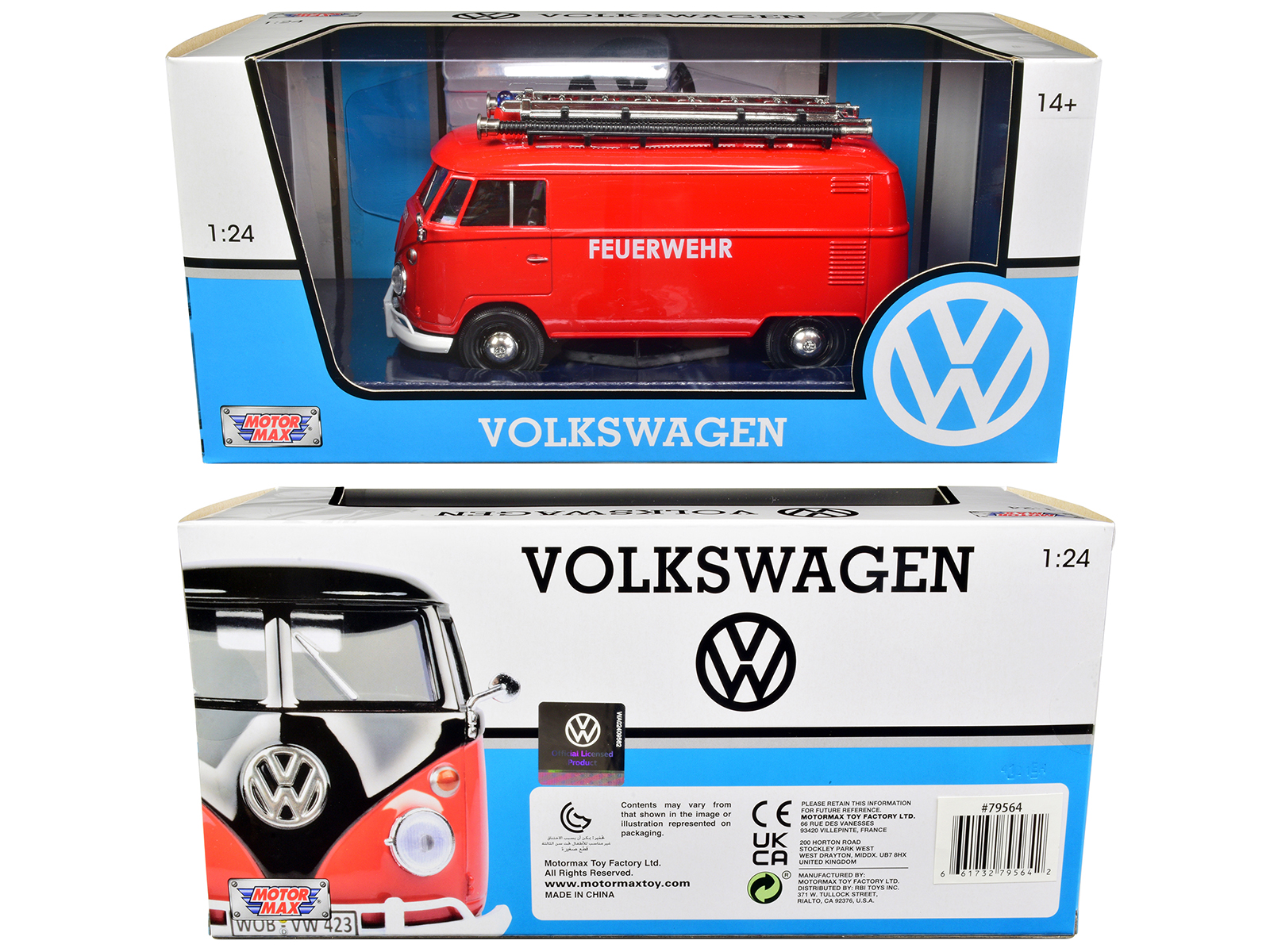 - Brand new 1/24 scale diecast model of Volkswagen Type 2 (T1) Fire Van “Feuerwehr” Red die cast model by Motormax.
