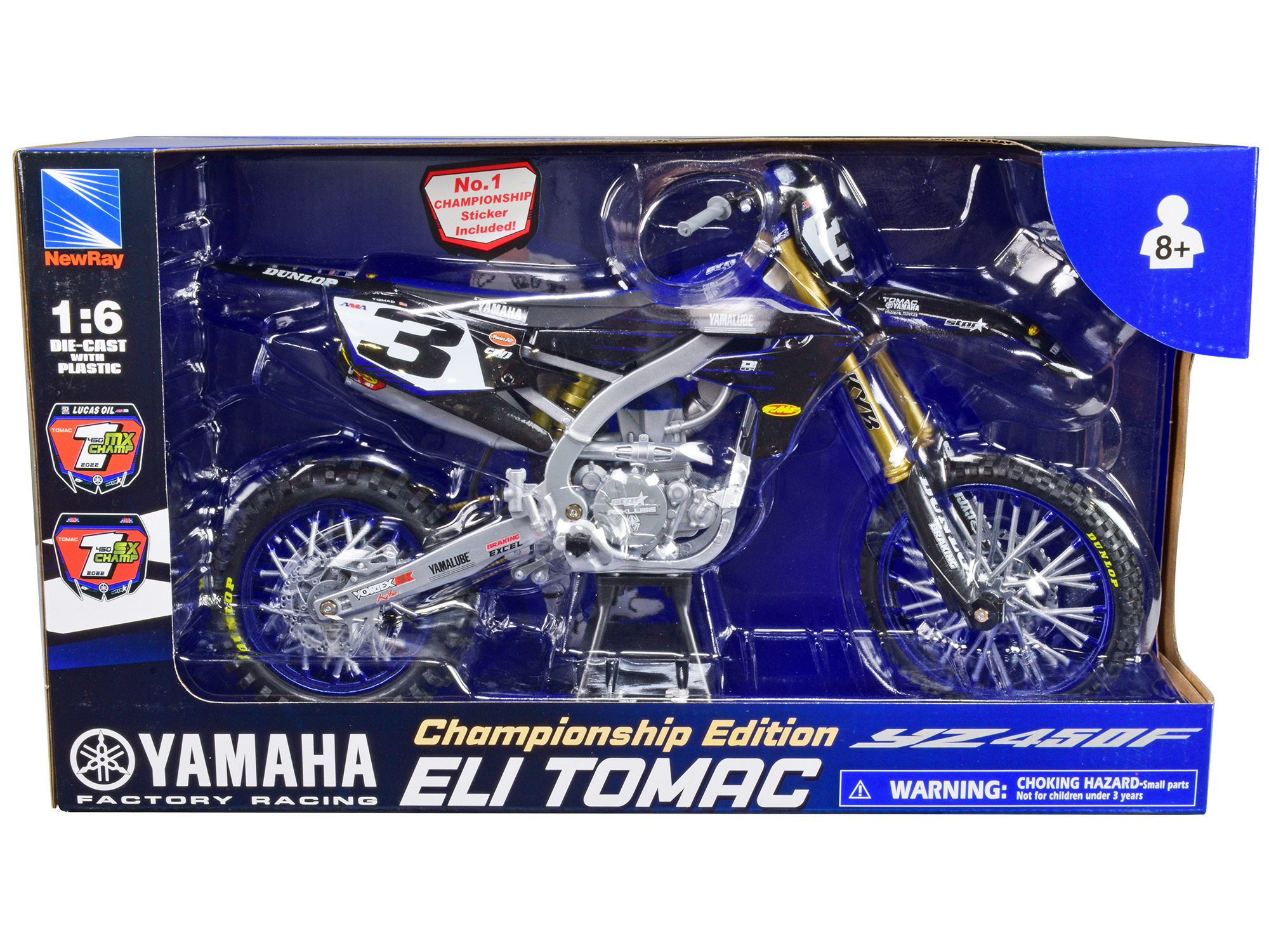 - Brand new 1/6 scale diecast model of Yamaha YZ450F Motorcycle #3 Eli Tomac “Championship Edition” Yamaha Factory Racing die cast model by New Ray.